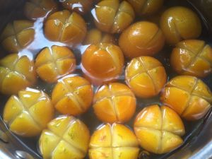 金桔倒入冰糖水中,大火煮开转小火熬50min