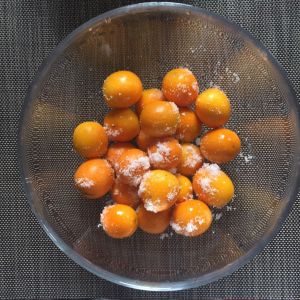 待金桔冷却以后,在上面淋上一层蜂蜜。密封,冰箱冷藏,泡水备用。