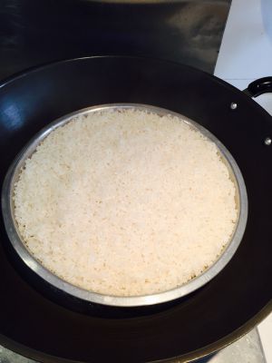 两小时后把糯米上锅蒸熟,大概20分钟,这图是蒸好出锅的,如果你嫌米不够软的话就加小半碗水蒸,喜欢米硬爽口的就直接蒸