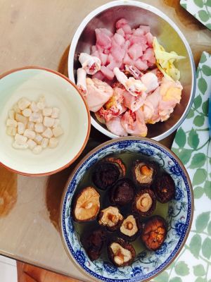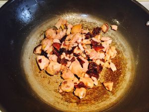 鸡块,香菇,瑶柱爆炒后备用