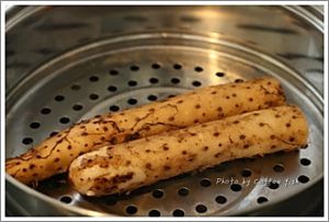 准备一根山药,山药洗净上锅蒸.大约20分钟.手按山药变软.就熟了