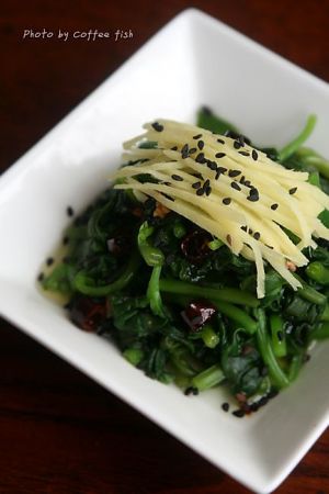 姜丝放在穿心莲上.淋上调好的调料汁.辣椒油.
