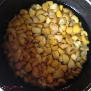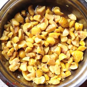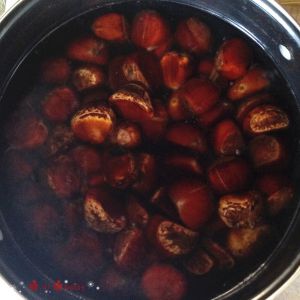 将板栗仁切碎一点,放入锅中,加水中小火煮熟。