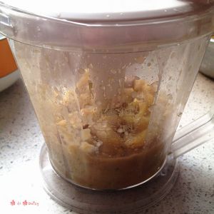 把板栗仁碎分批搅打,搅打时稍加些清水。