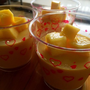 吉利丁片 放入冰水(饮水机制冷那个水即可)泡上。一个芒果 切块 搅拌机打成泥