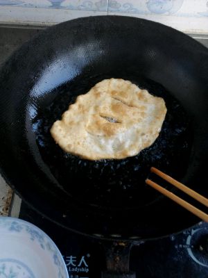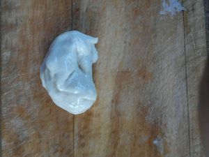面板上抹一点油,饧发后的面,一小块用手铺平,