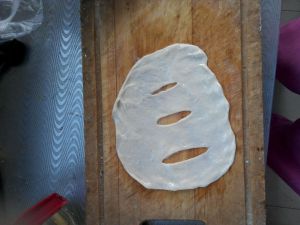 我的面饧了一夜,转天早晨做的,铺平后,用刀在中间切几下