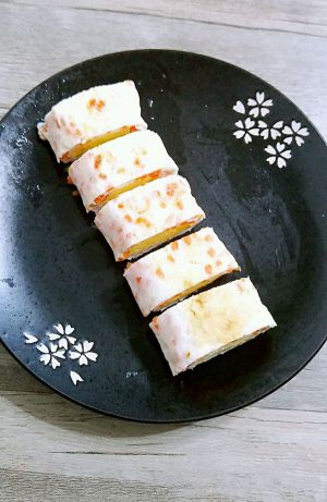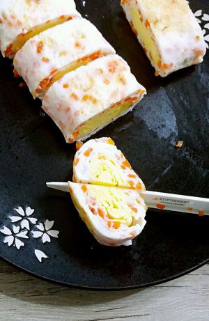 凝固后也用铲卷起 3分之2时倒入蛋白液余下的一半