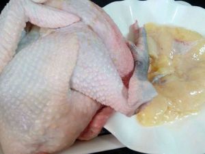 母鸡一只,切块备用。这是妈妈家养的,挺肥的