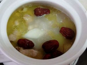 最后放入大枣枸杞煲10分钟。大枣也可以同山药一起放入。