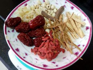 备好枸杞,红枣,莲米,百合,以仁,黄芪,当归,党参
