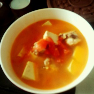 炒好的番茄放进排骨汤中,大火五分钟,就好了