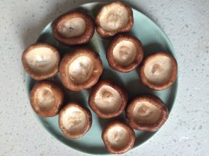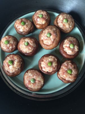 拌好的肉末放在香菇上,我为了好看,还放了一个青豆~上锅中火蒸15分钟~~~