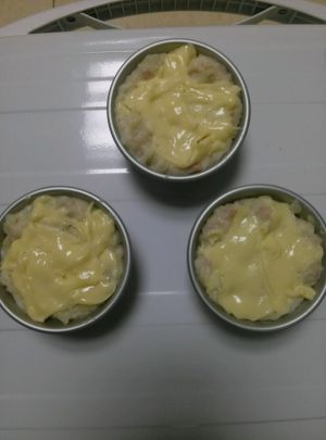 将土豆泥装入小碗儿中,放上芝士,烤箱200度十分钟左右即可(烤箱要事先预热一下哦)