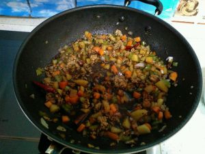 再倒入事先抄好水的其他时蔬,和洋葱一起翻炒!
