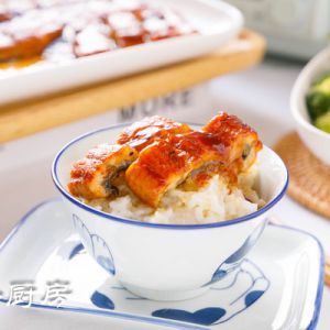 蔬菜蒸15分钟就可以,冷冻的蒲烧鳗鱼装盘,拿出西蓝花放入鳗鱼,鳗鱼本身就是熟的,蒸5~7分钟就可以。