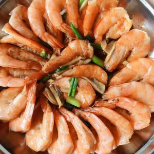 将大虾摆入锅内虾头朝内一次摆成圆形。