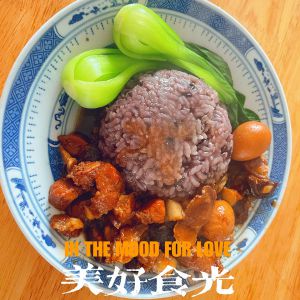 热水烫两根青菜,米饭拌上汤汁,开吃