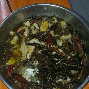 另起火烧油,油量多些,烧热后放小火,放入多多辣椒和花椒粒,待辣椒变色关火,连油一起倒入水煮鱼上,好了麻辣鲜香的水煮鱼上桌啦!快尝尝吧!