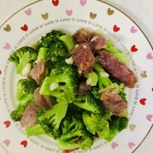 加入西蓝花,盐,翻炒熟即可。