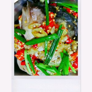 锅内烧水,水开放入腌好的鱼头蒸8-10分钟,看鱼头大小决定时间。最多不能超10分钟。否则鱼头会散架哦!