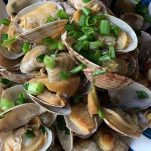 锅里放水,下入一勺料酒,半勺盐煮开,下入花蛤焯水1分钟捞出,这样可去除花蛤里面的泥沙