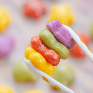 把面团平均分成4等份,在每一份面团中加入3~5g的果蔬粉,揉搓均匀。