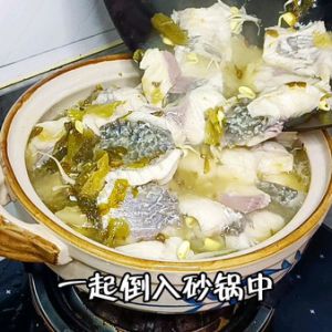 放豆芽煮1分钟,再放鱼头鱼骨煮2分钟
