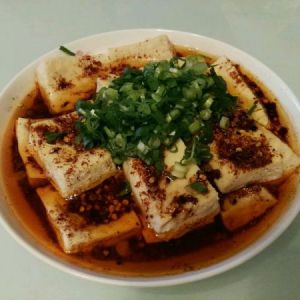 另起锅热油,油热时把生辣椒面撒在蒸好的豆腐上再浇上热油