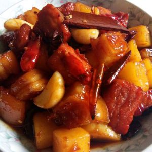 猪肉洗净,切成3x3厘米方。放入八角桂皮,高压锅炖,上汽6--10