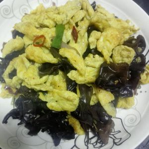 再加入炒好的鸡蛋,青蒜苗,翻炒均匀,加点鸡精。