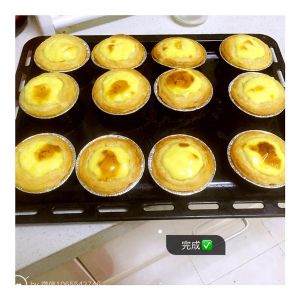 把蛋挞液倒入挞皮里,8分满即可。因为一会烤制,它会膨胀,太满,怕撒到烤箱里
