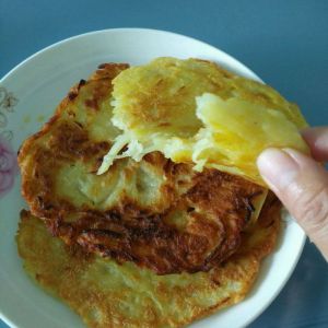 土豆切丝,加适当面粉,一个鸡蛋,加水,调至图片的浓稠度;