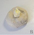 包合捏紧,放入烤盘中盖上湿布,置于温暖湿润处进行最后一次发酵,约35分钟。与此同时,为了防止剩下的面团发酵过度,先将其放入冰箱冷藏。