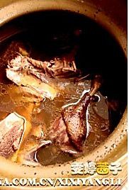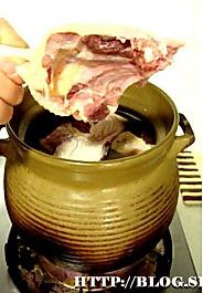 准备一个很大的炖汤瓦罐,放入冷水,然后将药材放入一同煮开(一定要冷水下药材)