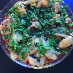把第六步拌好的油料倒入斩切好的鸡上,洒上花生米末,香菜末,可以开动咯!愉快的小聚会☺️☺️☺️