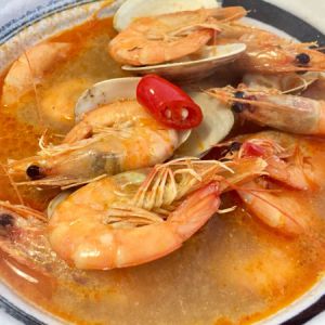 放入蛤蜊,草菇,小火煮至蛤蜊开口,加鱼露调味,尝咸淡适量加盐,出锅,挤入鲜柠檬汁