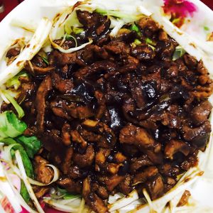 2️⃣锅中放油,倒入调好的酱翻炒,放入少许水(看情况适量放),酱炒粘稠了放入肉丝翻炒,炒二三分钟出锅,浇在葱上面即可
