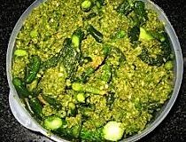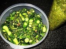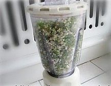 放料理机里搅碎。后来我发现料理机弄得不如人意而且效率很低,就改为用刀剁,人工比机器更快捷,不要把韭菜花弄得像泥一样,那样口感不好。