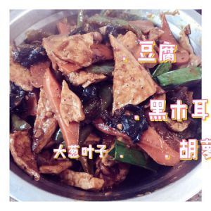 铁锅倒油 添加适量的黄豆辣酱 倒入材料一起翻炒