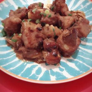煎得焦黄的骨头君,倒入半碗(三两左右)酱汁,磁磁磁的煮好收汁,要是有薄荷叶点缀一下就好味又好美啦!