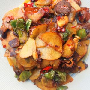 加入土豆片,切记如果是泡过水的土豆片一定一定一定要把水沥干!!!