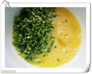 韭菜去除黄叶,洗净,切碎;西红柿切碎。