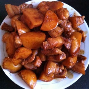 加入酱油、适量盐、少许白糖翻炒后加入500ml水(以没过食材为准),大火烧开后改小火煮至土豆酥软,大火收汁即可。