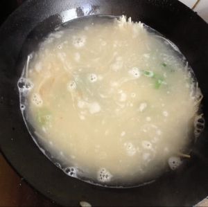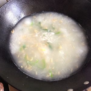 加入温水,放入少许盐,虾皮和肉酱已经有咸味了,少盐更健康