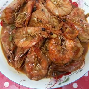 坐油锅七分热放姜丁蒜末爆香,放虾炸红