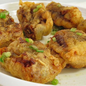 煎到表面金黄就可以了,将排骨取出,撒上椒盐和葱花,不要急着吃,会烫去。如果想让排骨更好吃,泡发更大一点,可以加些酵母^_^