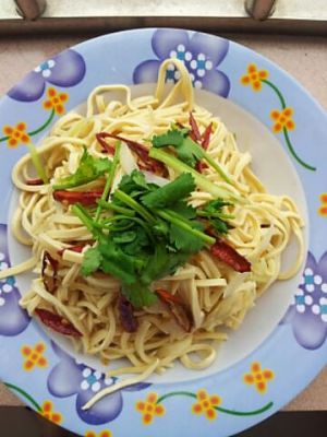 放入盆中的干豆腐,加入,盐,味精,鸡粉,香油,把葱丝,干红椒丝放入干豆腐上面,2大勺上火,锅中放入少许底油,烧6-8成热,浇在干辣椒,葱丝上面,搅拌均匀后,即可上桌,注意:用塑料盆时,小心油温高,烫坏了