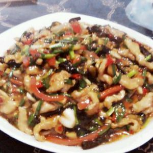 翻炒之余,用苕粉兑少许水,搅拌后沿锅周围淋下。放入香葱末,撒些味精,起锅。香喷喷的鱼香肉丝开动了。