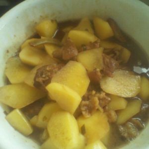 小火闷30分钟,土豆剥皮切块,中小火再焖10分钟